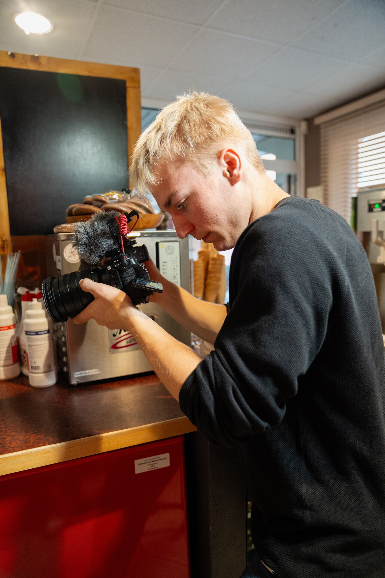 Idyllisch gelegen am Schlossteich in Pulsnitz, wollte Inhaberin Annett Kluhs ihre Eisdiele sowie ihr engagiertes Team eindrucksvoll mit einem modernen Imagefilm präsentieren. Dafür habe ich ein kreatives Konzept entwickelt und gemeinsam mit Konstantin Decker als Oberbeleuchter umgesetzt. Zusätzlich zum Imagefilm sind zwei Kurzvideos für Instagram entstanden.